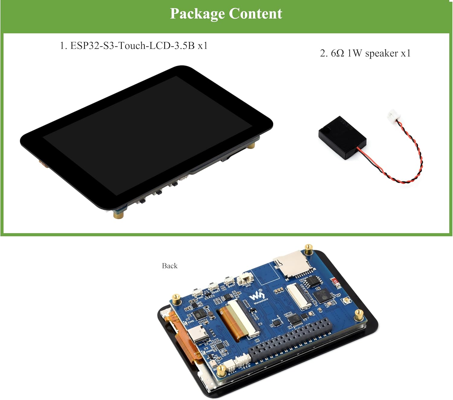 | BuiltIn Media | 6Ω 1W speaker x1, ESP32-S3-Touch-LCD-3.5B x1 |