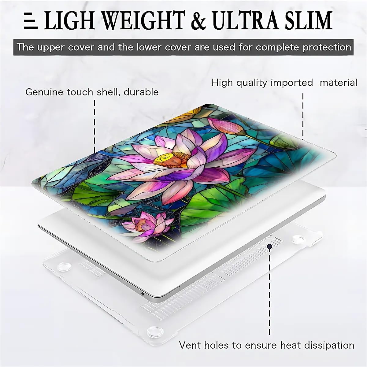 ■IMPORTANT When choosing the right case for your MacBook, remember to look for the model number “Axxxx” on the back of your laptop, where “XXXX” is a number! This way you will be able to choose the perfect case for your MacBook and make sure it is the right size. ■Features & Functions This case is made of high quality plastic, lightweight and thin, no burden to use. With two-piece design, it is super easy to install and remove, no tools are needed, you can handle it easily. Ventilation holes on the bottom can effectively promote heat dissipation, keep your device cool and avoid overheating. With a variety of styles and colors, you can add a unique personality to your MacBook according to your preference while providing great protection. ■Installation Tips Be sure to read the installation guide that comes with the product to make sure the case is installed correctly. This will not only enhance the look, but also allow the case to work at its best!