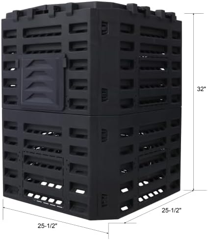 Product Features: Effortless Composting: Cultivate your green thumb our composters, making the nutrient-filled soil for your garden a straightforward process. Whether you’re a seasoned gardener or a beginner, our composters can transform your backyard into a personal paradise with ease. Reduce Waste, Reap Benefits: Add a composter bin to your backyard to limit waste and save money. Simply fill the bin with organic waste, use the vitamin-enriched soil from your compost box, and enjoy the benefits of delicious, home-grown produce. Premium Recycled Plastic Construction: Our composting bin is made from BPA-free recycled plastic, ensuring that valuable vitamins are not compromised by toxins. The black PP plastic material maintains heat and regulates moisture, resulting in a shorter composting time. Easy Aeration: Our composting bins are designed for easy assembly and simple use, allowing you to start composting quickly without the need for digging, shoveling, or hand mixing. The secure lid keeps pesky critters away from your valuable food scraps.