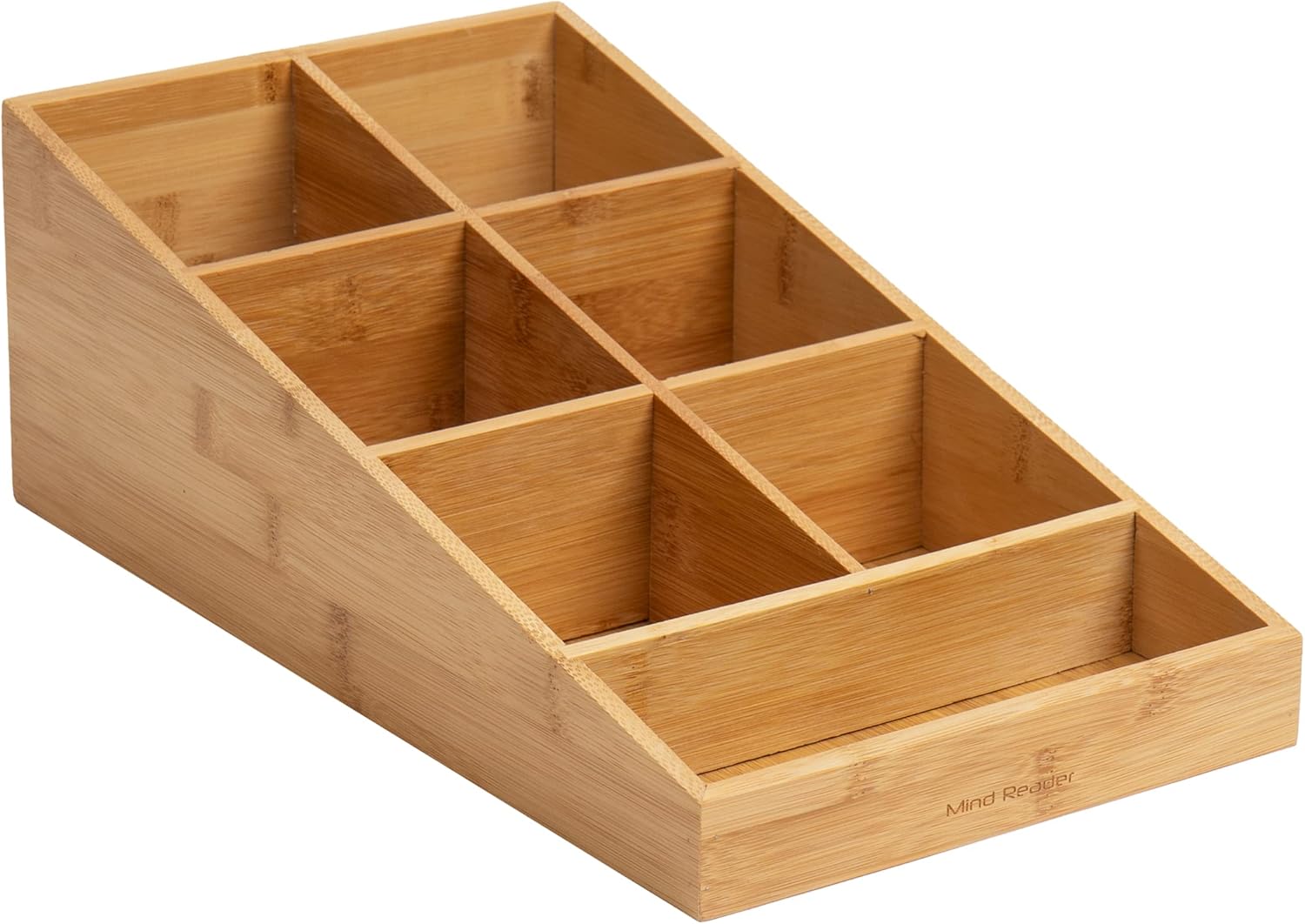 7-compartment Beverage and Condiment Organizer Constructed of rayon from bamboo, this organizer can withstand daily use in high-traffic areas. It's perfect for countertops, desks, tables, and even inside your cabinets for ample storage. Because of its versatility, this can be used in several ways, including the organization of office supplies, makeup and toiletries, kitchen items, and more. The 4.2-inch opening lets you stack 12-, 16-, and 20-oz cups and lids. At 1.76 lbs (800 g), it is extremely lightweight and easy to move from place to place if needed. It is the perfect choice for beverage organization (fits styrofoam cups without cracking them). Still, it has many other uses, such as storage of office supplies, kitchen items, and more. This is a terrific gift for coffee and tea lovers. The caddy takes up minimal counter space and organizes ample supplies.