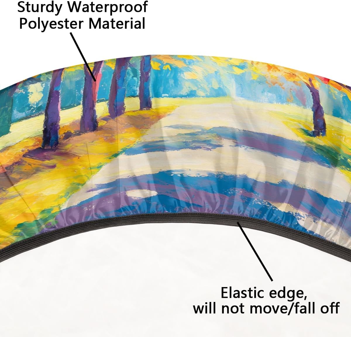 colorful tree forest round tablecloth with elastic edge small fitted circle table cover wipeable round table cloth for indoor outdoor patio Dining Kitchen decorOur store offers a variety of DIY-themed table covers round designs for you to choose from, including animal, floral, beach, marble, funny, and cute styles.Product Size: Fits 36-42inch or 45-56inch round tables made of wood, glass, or metal.Product Included: 1 fitted round table cloth.Product Features:The elastic edge ensures a secure fit, preventing the colorful tree forest tablecloths from slipping or sliding.Child-friendly design prevents kids from easily pulling it off.Our circle table cover is made of durable polyester fabric that is fade-resistant and tear-resistant wipeable, waterproof, and oil-proof. Liquids such as drinks, soup, or sauces won't penetrate the surface—just clean with a damp cloth.Machine washable on a delicate cycle with mild detergent. Do not bleach. Iron on low heat from the back if needed.this circle table protector is suitable for dining tables, kitchens, restaurants, buffet dinners, picnics, banquets, coffee tables, weddings, parties, birthdays, cafes, barbecues, camping,patio and both indoor and outdoor use.Gift Idea:This colorful tree forest fitted tablecloth makes a thoughtful gift for moms, dads, sisters, brothers, grandparents, spouses, children, friends, and all other loved ones. Choose from a variety of fun, stylish, and surprising designs to suit any personality.