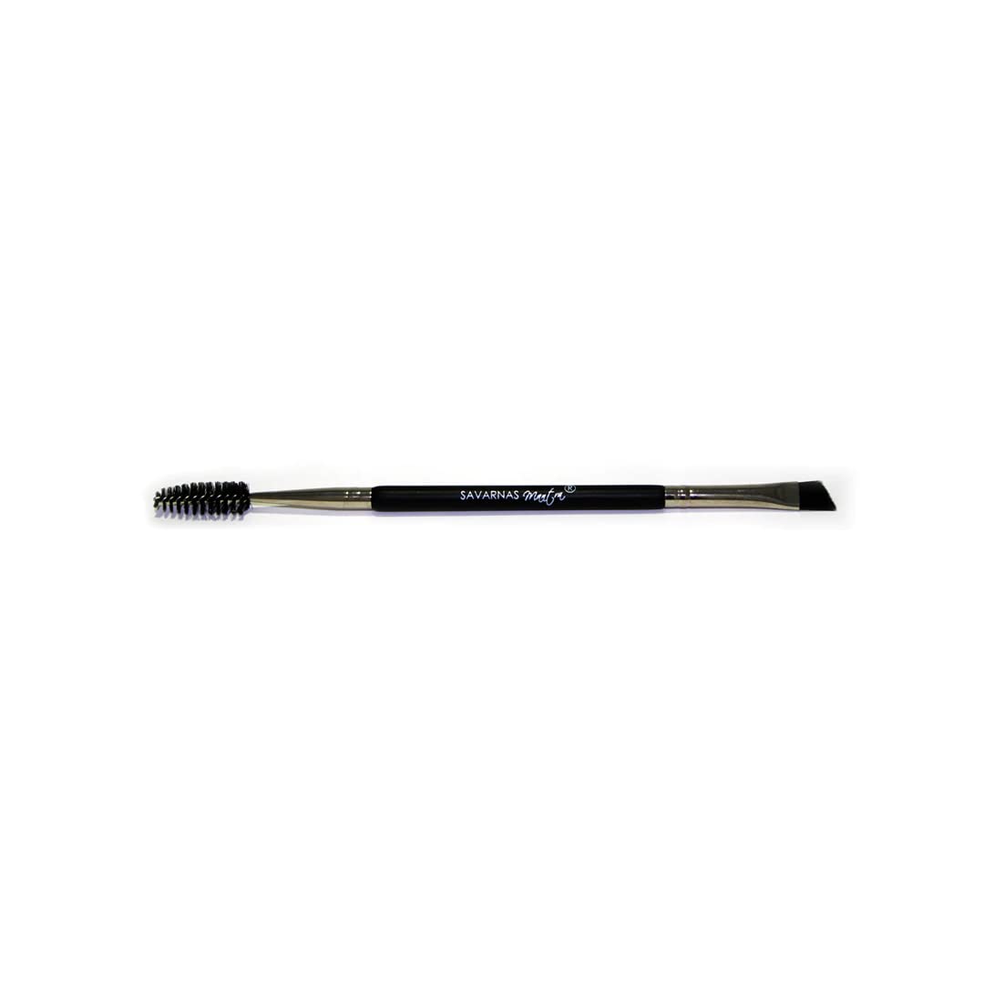 The versatile eyebrow brush and spoolie is a perfect choice for an eyebrow kit. The dual-ended brow brush has an angled tip on one end and it allows for powder, pomade, or gel to be applied with ease from the starting point of eyebrows to the tail. The spoolie brush is ideal for blending different shades of eyebrow powder and for grooming brows. Recommended for :Angled tip brush: Applying brow powder, pomade, gel, and wax on eyebrows.Spoolie brush: Blending eyebrow powders, and grooming/brushing brows to remove stray hairs.Product benefitsAngled tip eyebrow brush allows for brow powder to be applied faster and it creates thicker and fuller brows that are defined and sculpted to perfection.Dual ended eyebrow brush is designed to be easily held and used by experts and beginners.Top notch materials and firm bristles ensure that the brush can be easily cleaned and maintained.Multipurpose angled tip brush is useful for applying eyeliner while the spoolie can be used to remove mascara clumps from eyelashes.Manufacturing facility Savarnas Mantra products are manufactured in an FDA-registered facility in the USA that is cGMP accredited and ISO 22716 certified.How to use when applying brow powders 1) Use the spoolie end of the brow brush to comb eyebrows upward and remove loose hairs.2) Dip the angled tip brush in brow powder, and use the short side to draw a soft line at the top and a darker line at the bottom of each eyebrow.3) Using the long side of the slanted tip brush apply eyebrow powder first to the middle of your brows, and then move towards the start and tail.4) Using the spoolie comb your eyebrows to spread the eyebrow powder or blend different shades.Tip : Clean the dual eyebrow brush once or twice a week.